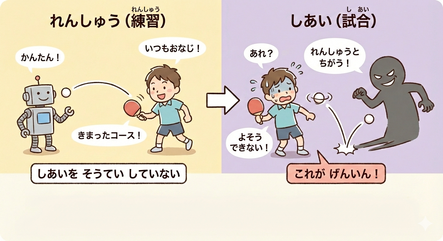 問題の本質は、練習が試合の場面を想定していないことにあります。