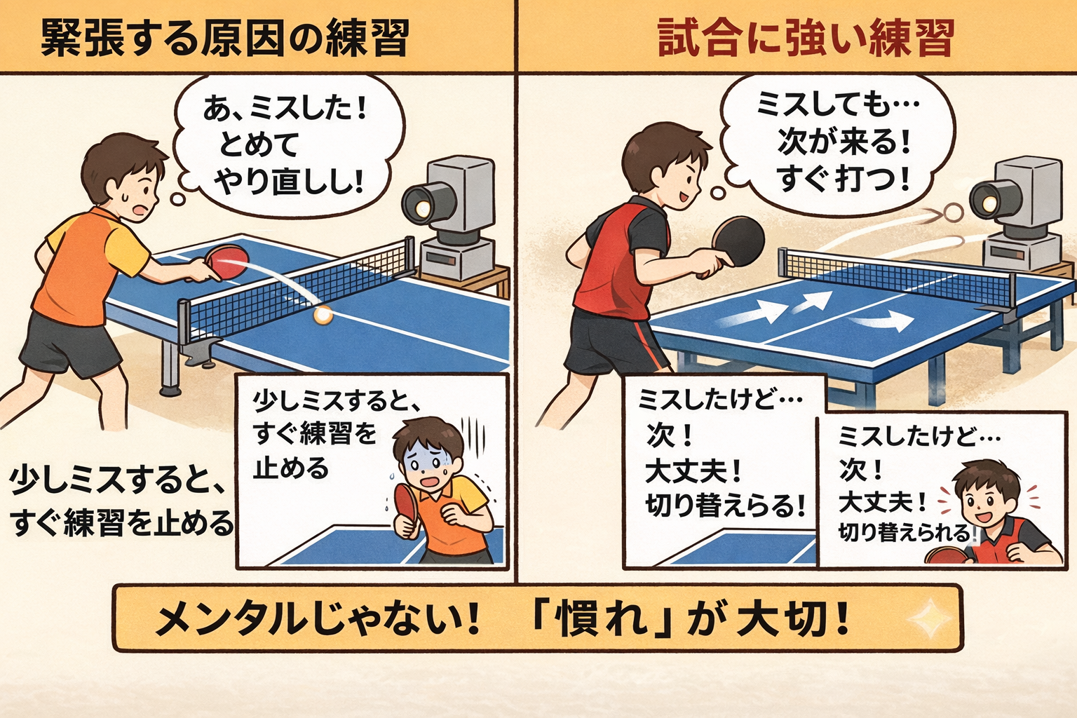 試合で緊張してしまう原因は、メンタルではなく練習環境にあります。