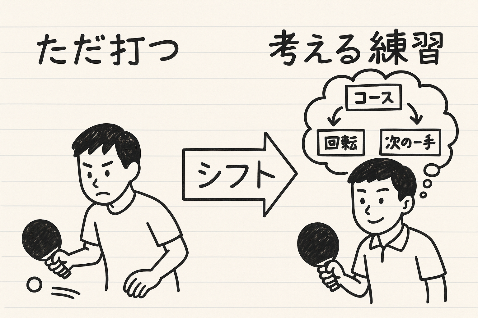 練習では普通に打てるのに、試合で勝てない。こういうときは、技術そのものより「戦術の型」が少ないことが原因になっている場合が多いです。