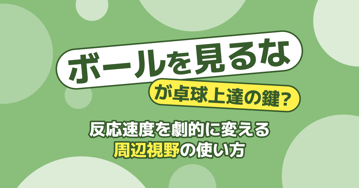 卓球を始めたとき、誰もが「ボールをよく見て」と言われます。しかし、このアドバイスを「ボールのみを凝視する」と捉えてしまうと、逆に反応は遅くなります。